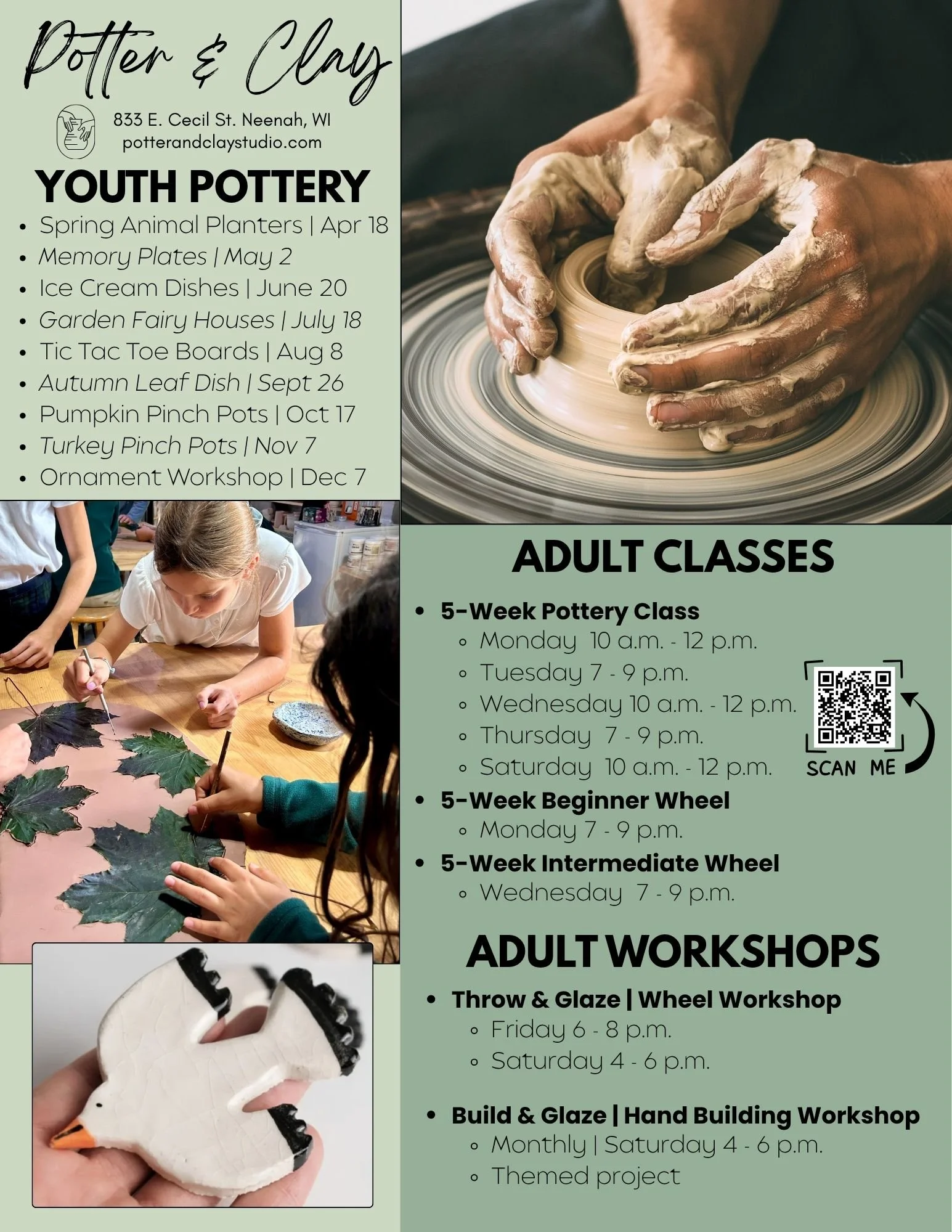 Classes & Workshops Discover the joy of working with clay in a welcoming, creative space. Whether you're a total beginner or looking to grow your skills, our pottery classes offer something for everyone.